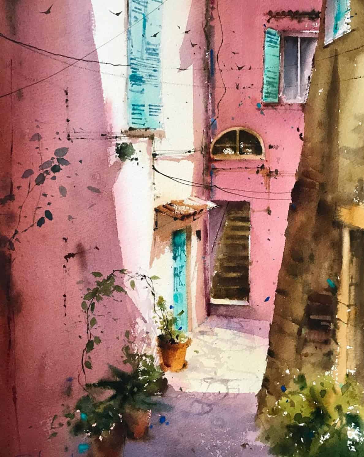 The cheerful and airy watercolours of Blanca Alvarez from Malaga are a riot of elements and colours and unique colour combinations. She paints her native Spain — streets, houses, courtyards, the raging sea, lighthouses and poppy fields. Watching the artist’s interviews or seminars, it becomes clear how easy-going and open she is — just like her work: ‘When I paint, I am happy. When I paint, I want to dance and sing.’ Alvarez believes that art should bring happiness to both the artist and the viewer.